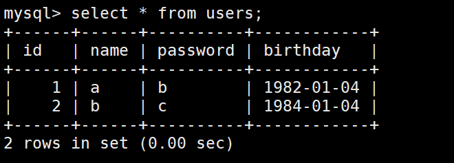 mysql> use test2; mysql> select * from person where name=‘a’; ±-----+ | name | ±-----+ | a | ±-----+ 2 rows in set (0.01 sec)