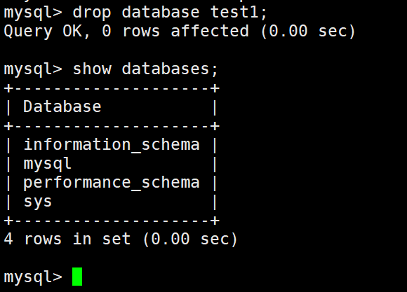 执行删除之后的结果: 1.数据库内部看不到对应的数据库。 2.对应的数据库文件夹被删除,级联删除,里面的数据表全部被删。 注意:不要随意删除数据库