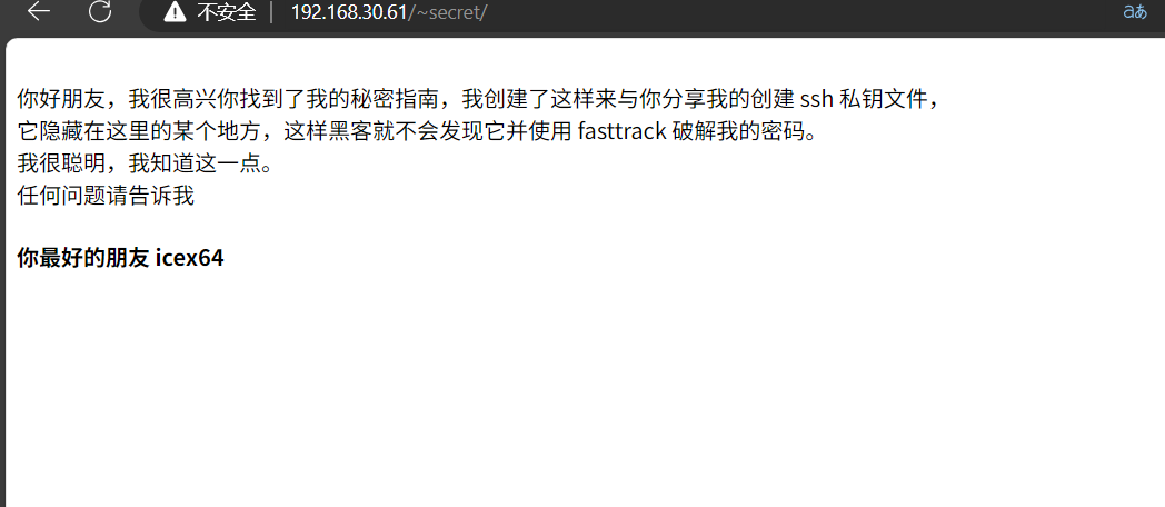 访问一下给了个用户,然后提示我是有ssh文件,还是得要扫。