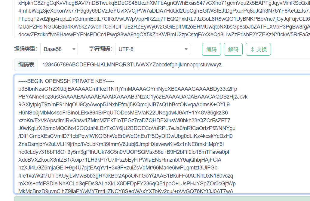 拿到他说的密钥了,这很明显加密过了。这个加密是base58。