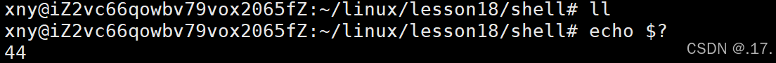 故意写成 ll (没有定义的),导致子进程退出,退出码刚好是44。