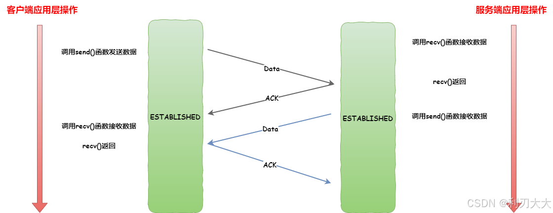 在通信过程中,无论是客户端还是服务端,它们都是处于 ESTABLISHED 状态的,这是不变的!