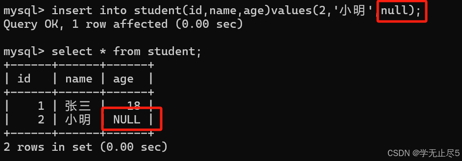 当然当⼿动明确指年龄列为NULL时列值为NULL