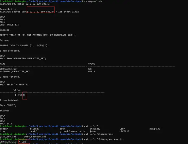 服务端(UTF16) → yasql(GBK) → 终端(UTF8)只有终端与 yasql 保持编码一致,才能正常显示查询结果。