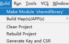 2. 选中HSP模块的根目录,点击Build > Make Module ${libraryName}启动构建。