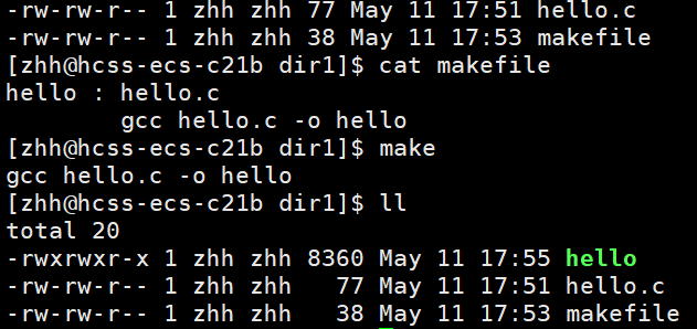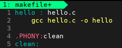 [tab] command # 依赖方法必须以 Tab 开头(非空格)示例:编译 hello.c 生成可执行文件 hello