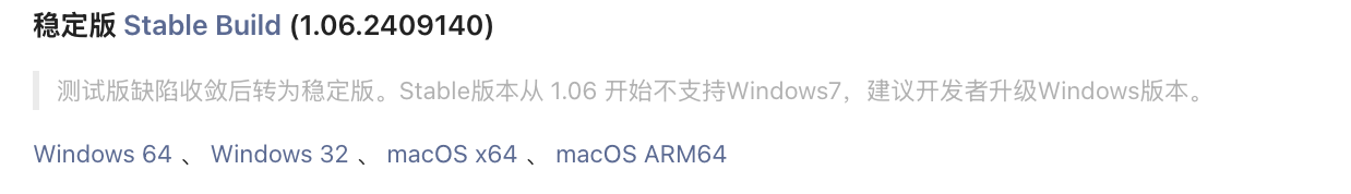 按照操作手册,我们需要前往 微信开发者平台 IDE 下载微信开发者工具,注意需要下载最新稳定版(1.06.2409140以上)。