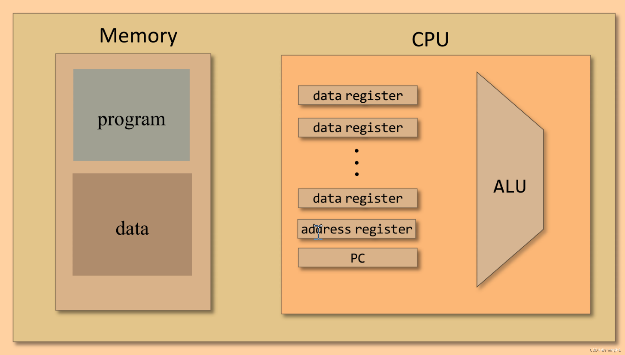 存储器(Memory):用于存储程序指令和数据。存储器被划分为地址单元,每个单元存储一个字节的数据。程序和数据按照地址的顺序存储在存储器中,并通过地址来访问。