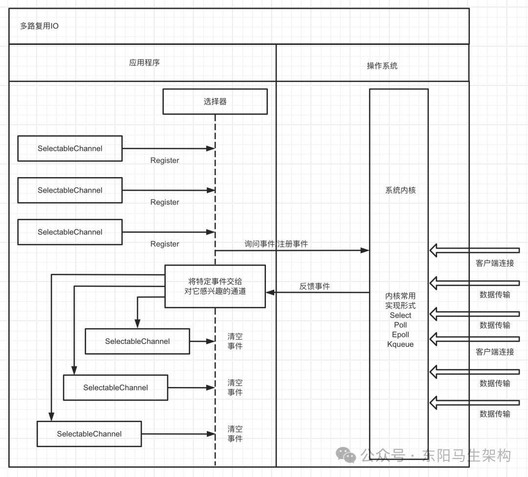 每当Acceptor处理器和读写事件处理器处理完所有就绪的感兴趣的IO事件后,Reactor线程会再次执行select()方法阻塞等待新的事件就绪并将其分派给对应处理器进行处理。