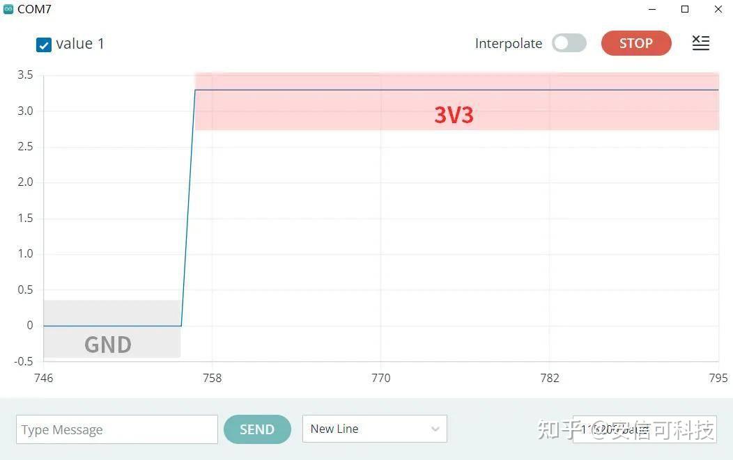 硬件连接完成后,打开串口,此时输出的电压值应为 0 。