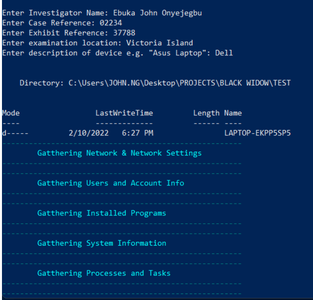 旨在协助取证调查员和事件响应人员进行快速的实时取证调查。它通过收集不同的系统信息,以便进一步审查是否存在异常行为或意外数据输入来实现这一点,它还会查找异常文件或活动并向调查员指出。需要特别注意的是,该脚本本身没有内置智能,调查员需要自行分析输出结果并得出结论或决定是否进行更深入的调查。
