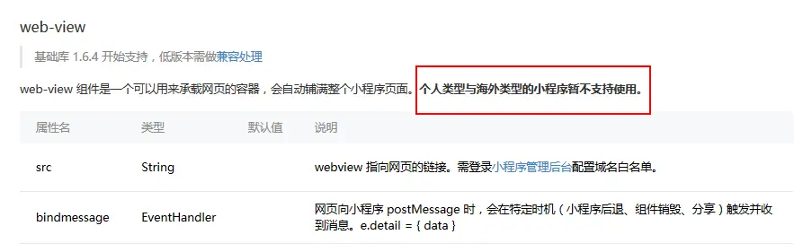 参考文档:https://mp.weixin.qq.com/debug/wxadoc/dev/component/web-view.html