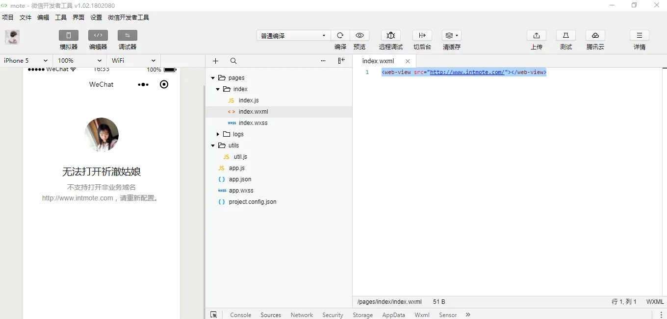 3:新建一个wxml 加入这段代码:<web-view src="http://www.intmote.com/"></web-view>