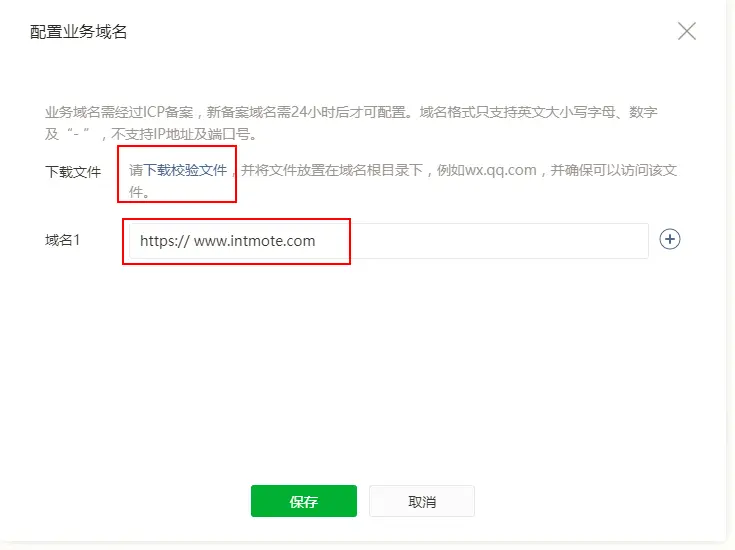 如果你有多个域名要添加,可以点击 + 号,我填写的是:公司官网:http://www.intmote.com
