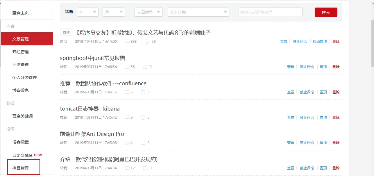2:选择栏目管理