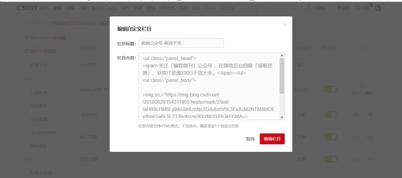 有人问我,我的csdn上的二维码是怎么添加的,其实很简单。