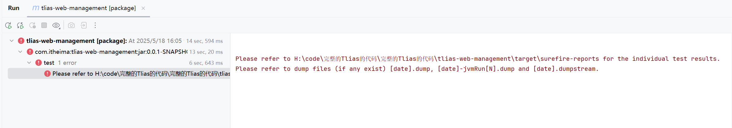 Please refer to H:\A2\tlias-web-management\target\surefire-reports for the individual test results. Please refer to dump files (if any exist) [date].dump, [date]-jvmRun[N].dump and [date].dumpstream.