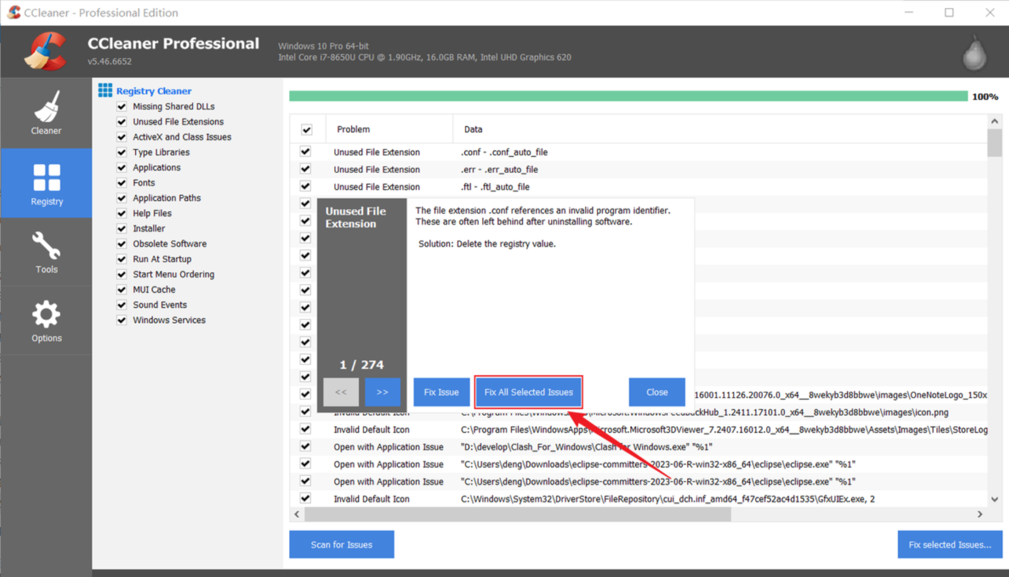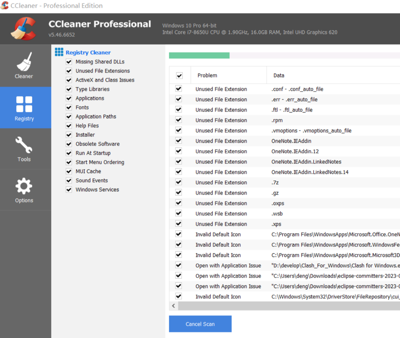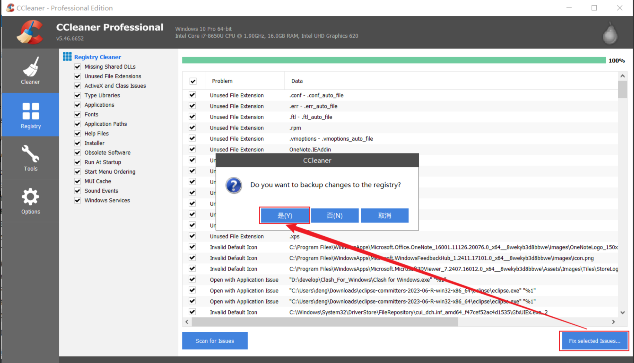 卸载完毕后,通过CCleaner"来清理一下注册表。