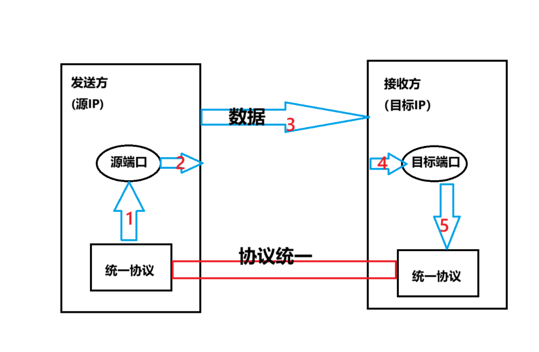 用送快递的例子来抽象表示一下: 源IP地址:寄件人地址 源端口号:寄件人的名字+电话号 目标IP地址:收件人的地址 目标端口:收件人的名字+电话号 协议:发顺丰的还是邮政的? 画图表示一下: