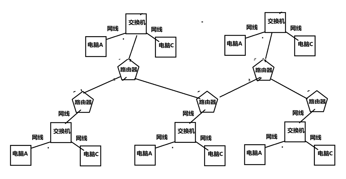 再到今天出现了路由器,由路由器电脑,交换机组成了局域网