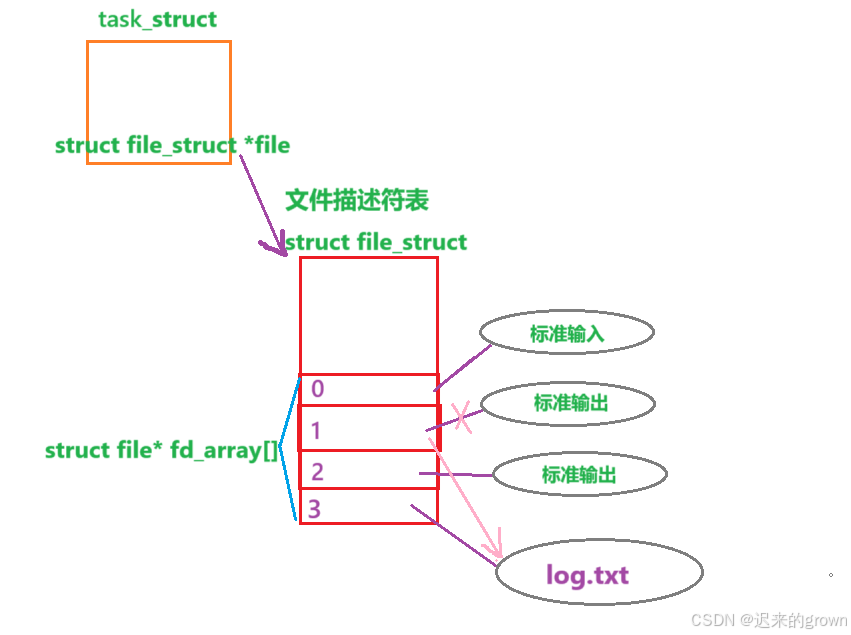 dup2的作用就是使用oldfd位置的值去覆盖newfd位置的值,这样做来达到修改file_array数组中的指针指向。