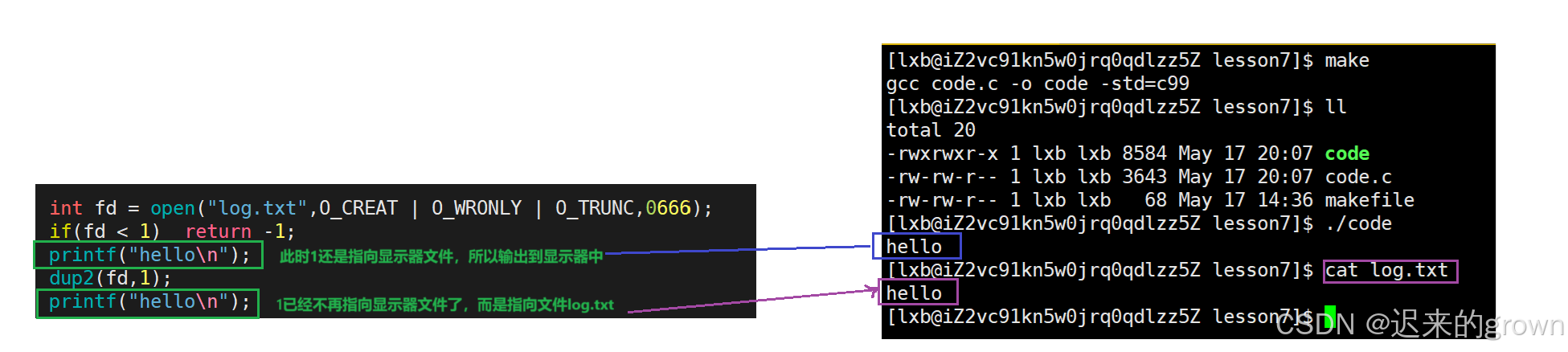 }在上述代码中我们将文件描述符1对应的文件(也就是显示器文件)关了,再打开文件log.txt,它的文件描述符就是1;