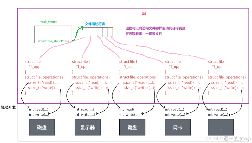 此外,我们知道我们访问资源,本质上是进程去访问资源,那进程访问资源,通过write和read就可以访问任何软硬件资源