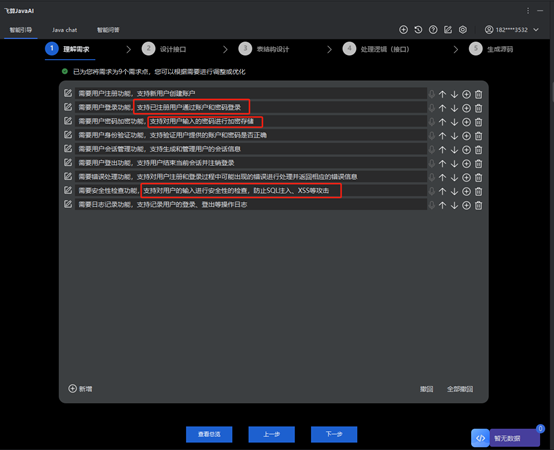 开发者在使用飞算 JavaAI 时,应尽量细化需求指令,明确业务规则和技术细节。比如在要求生成用户登录功能代码时,详细说明密码加密算法(如 BCrypt)、是否开启多因素认证等,减少 AI 对需求理解的偏差,从源头降低错误代码生成的概率。