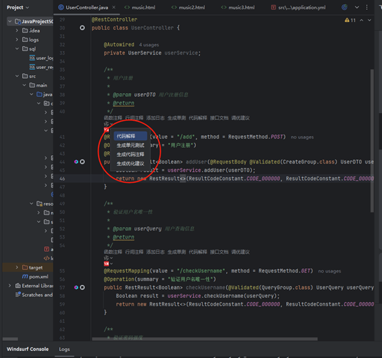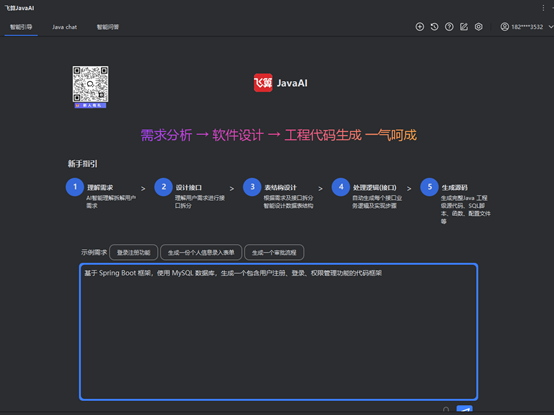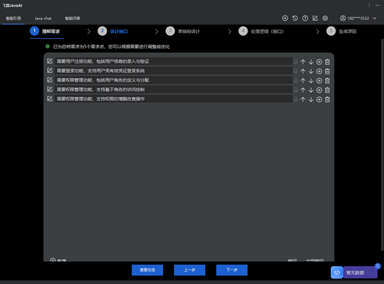 飞算 JavaAI 能够快速理解变更后的需求,并自动生成相应的代码。当需求发生变化时,开发者只需将新需求以自然语言形式输入,飞算 JavaAI 便能基于对原有代码的分析,精准定位需要修改的部分。例如原有的用户管理模块需要新增用户角色权限功能,飞算 JavaAI 会自动生成角色实体类、权限分配接口、权限校验逻辑等代码,并将其合理整合到现有项目架构中。同时,它还能对因需求变更产生的冲突代码进行智能重构,确保新代码与原有代码无缝衔接,减少开发者手动修改的工作量。