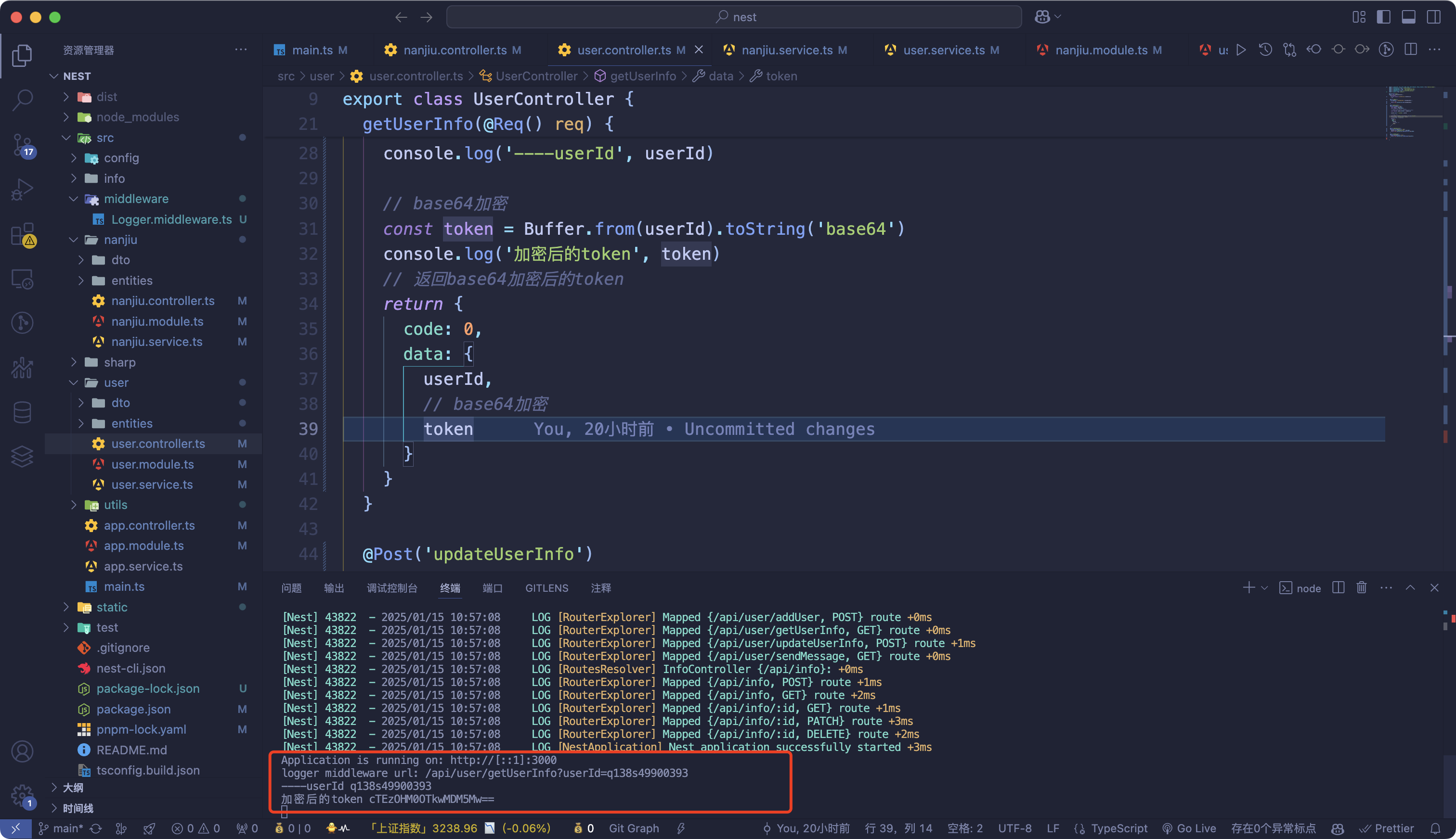 服务这边能够正常拿到cookie并使用base64加密,然后把加密后的token返回给前端