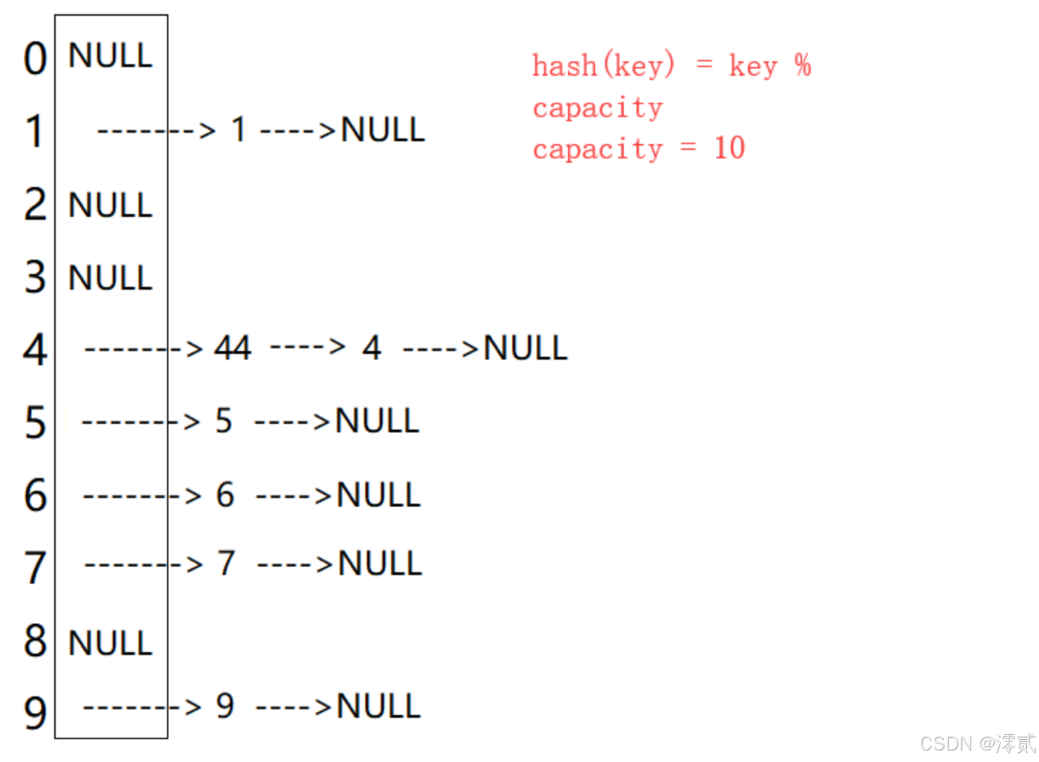 简单来说,通过除留余数法,将每个进来的值除以哈希表的大小得到的余数,必定是在所开哈希表的容器大小范围内的,但是有可能不同的 key 会除出相同的余数,造成同一位置的冲突,该种现象称为哈希冲突或哈希碰撞