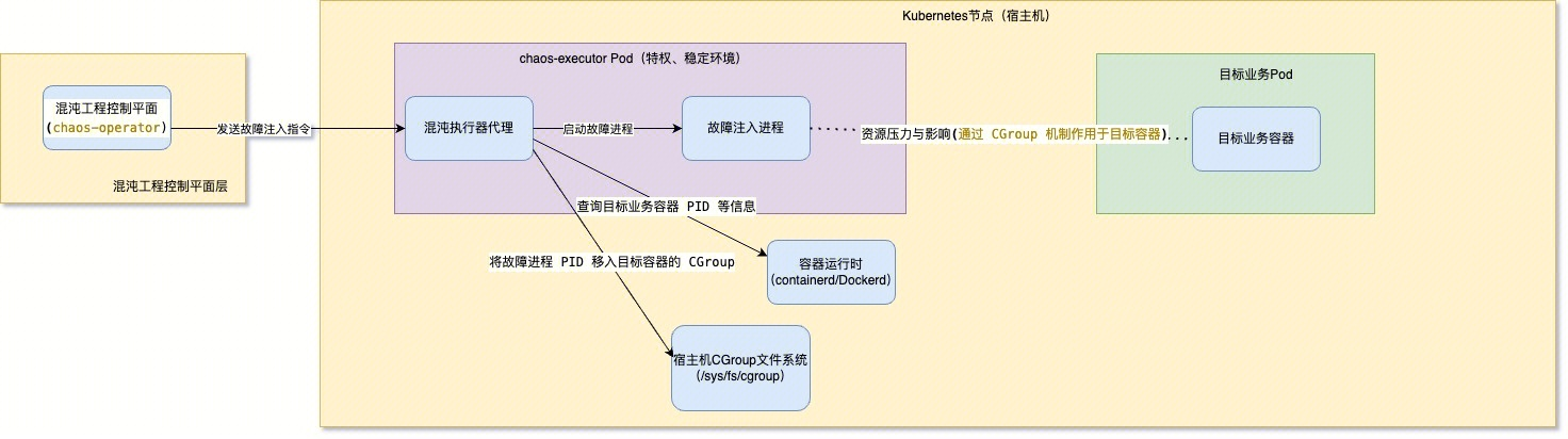 腾讯云云顾问混沌演练平台利用创新的技术,通过创建稳定的辅助执行环境(称为chaos-helper-pod),实现容器故障的精准注入。