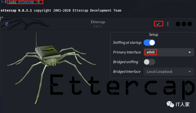 3.启动ettercap,开始劫持DNS,-G参数是使用图形界面