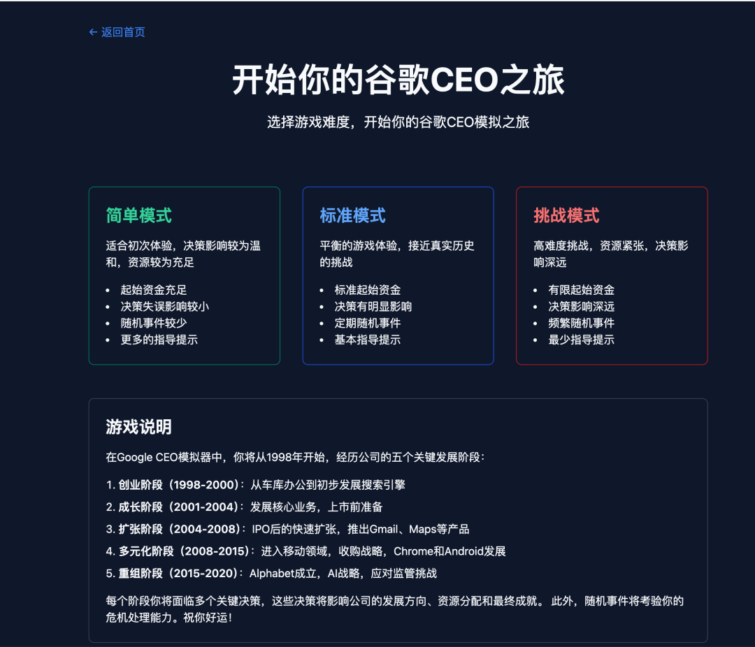 还有一个谷歌 CEO 的模拟游戏(session 回放链接:https://manus.im/share/cmRIphYJybxNiLSkWn6PJn?replay=1 )