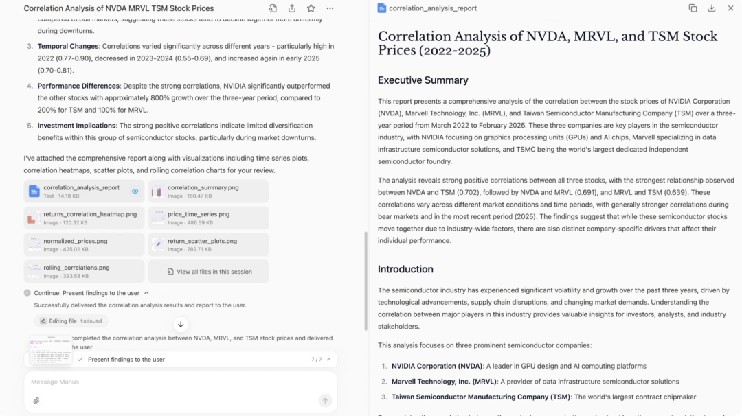 在最后一个案例中,Manus 展示了对股票价格的分析能力。