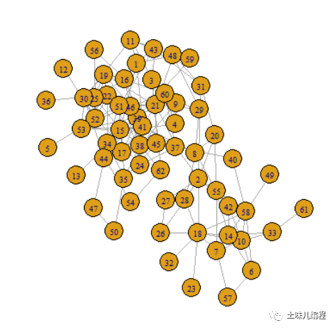 上文从导入外部网络和生成人工网络两个角度获得了 igraph 图对象,下面将使用 igraph 包中的函数对 Dolphins 网络进行简单的分析。