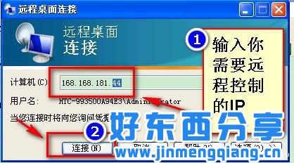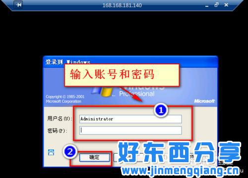 7、在下图对话中输入你要控制的电脑的账号和密码。备注:如果你要远程连接的电脑没有设置密码是连接不上去的,怎么设置电脑密码请参考下面:怎么设置XP开机密码。