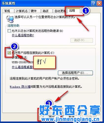 2、点击【远程】,在【允许用户远程连接到此计算机】前面选中打√,点击【确定】。