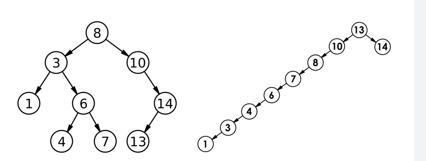 2.最差情况下,二叉搜索树退化为单支树(或者类似单支),其高度为: N时间复杂度大致为O(N)。