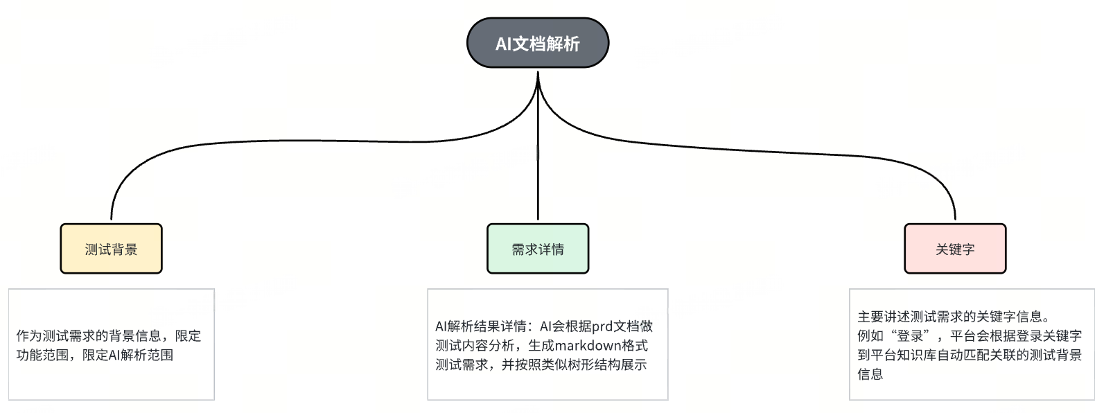 测试点生成器为AI生成用例的核心,实现PRD到测试点的转换。生成过程中结合需求背景、关键字、需求详情、业务背景、测试分析等信息作为业务背景,以更准确的生成测试用例。核心结构如下: