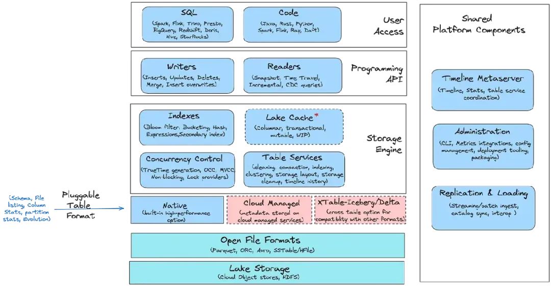 下面的堆栈所指的存储和管理层的组合就是"存储引擎"(与数据库系统处理此功能的方式一致),并提供了用户已经习惯喜爱Hudi的大部分功能。