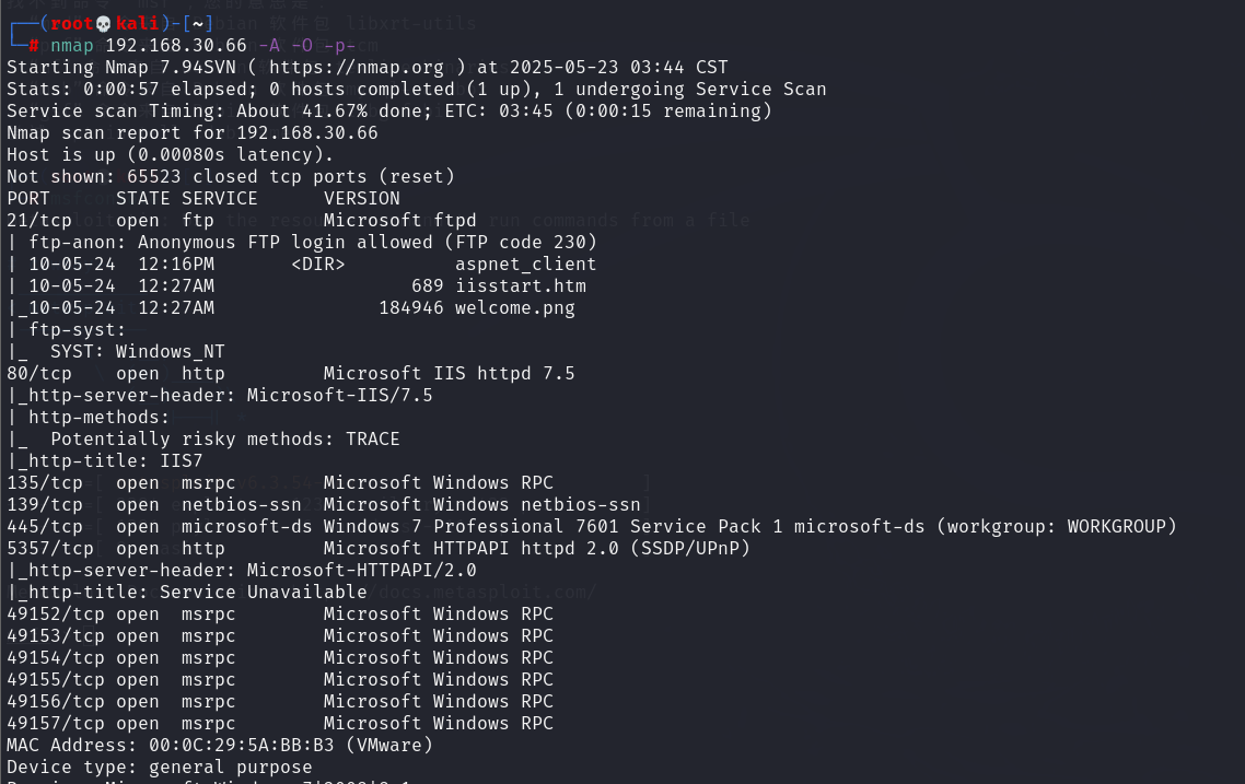 nmap 192.168.30.66 -A -O -p-