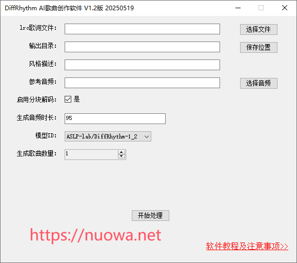 模型ID:默认为最新模型DiffRhythm-1_2,使用其它模型的话软件会自动下载模型文件。