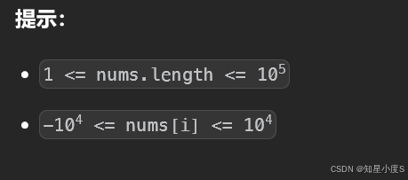 我们可以看到,状态转移方程里面有i-1,当i=0的时候显然会出现越界的情况,所以我们需要进行初始化 结合前面如果不想初始化太麻烦,我们可以多申请一些空间,我们可以多申请一个空间,并且把这个空间填写正确的数据保证不影响到后面的结果,我们求数组和不希望影响到后面的结果的话,dp1【0】影响到的是dp1【1】,即dp1【1】=max(nums【0】,nums【0】+dp1【0】),那么dp1【0】应该等于 0;dp2【0】影响到的是dp2【1】,即dp2【1】=min(nums【0】,nums【0】+dp2【0】),那么dp2【0】应该等于 0~同时要注意下标映射关系~ 那么我们初始化结果就是 dp1【0】= 0 ;dp2【0】= 0