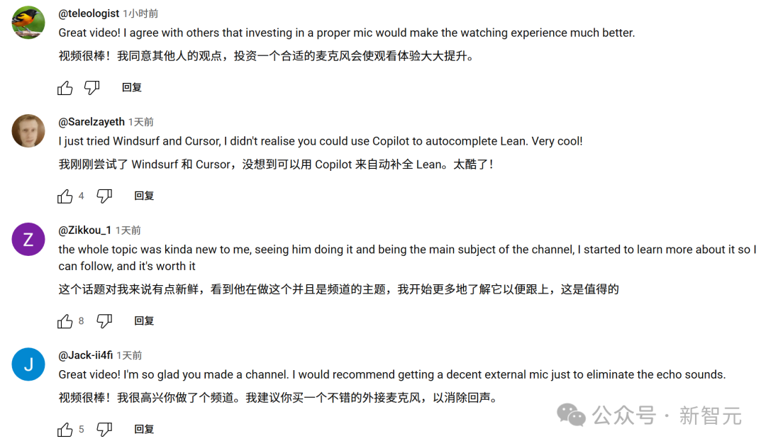 有意思的是,大部分观众都觉得视频做得很棒,不过不少网友都建议陶哲轩换个新麦克风,以消除回音。