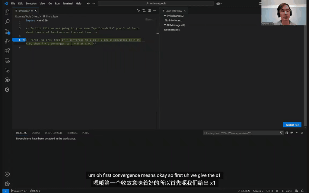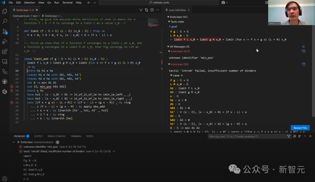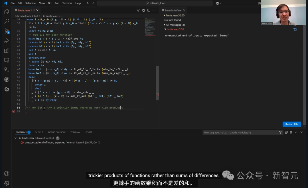 接下来,陶哲轩挑战了一个更复杂的定理:如果函数f(x)的极限是L,g(x)的极限是M,那么f(x)+g(x)的极限就是L+M。