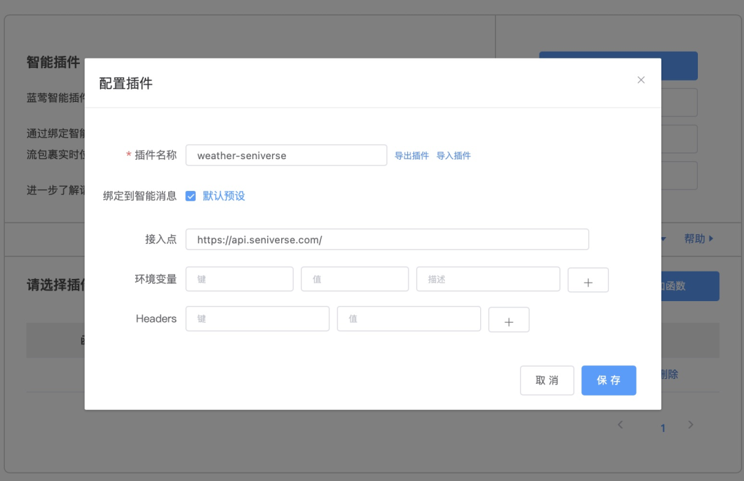 在函数设置之外,也有插件配置。主要目的为简化函数设置,这里设置的Header将会被所有函数共享,因此到了函数设置中就没有必要重复Header设置了。