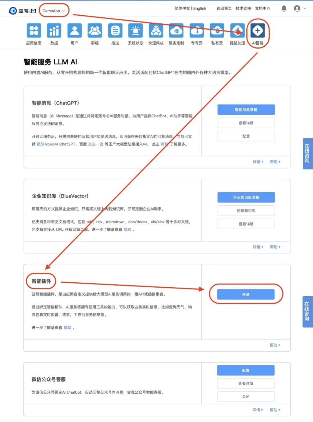 蓝莺IM控制台-智能插件-开通