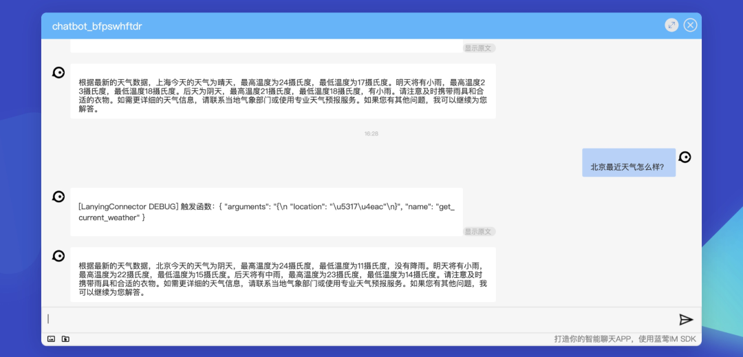 智能插件的核心是定义函数调用,由AI对调用进行拼装驱动业务层获取最新信息,补充进最终回复里。基本步骤如下: