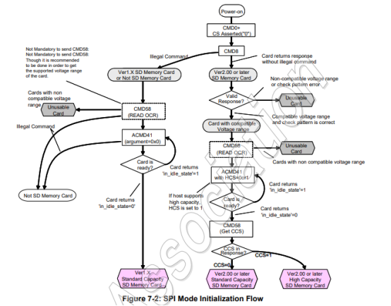 如果需要使用SPI接口,CS创世 SD NAND在首次上电时需要通过发送复位命令切换至SPI模式。在SPI模式下,初始化过程如下: